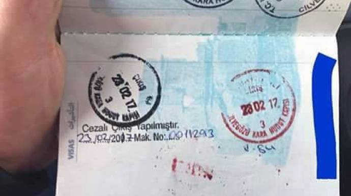 إضافة إلى وجود ختم آخر مكتوب، دُوّن فيه رقم وتاريخ الإيصال المالي للغرامة المالية المقررة من قبل إدارة المعبر وهي 690 ليرة تركية. وهو ما يعني دخول هذا الإجراء حيز التطبيق الفعلي بدءاً من يوم الأربعاء.
