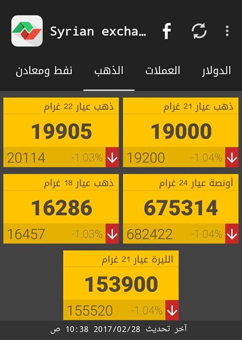 وفيما يلي أسعار أوزان الذهب حسب "سيرياستوكس":