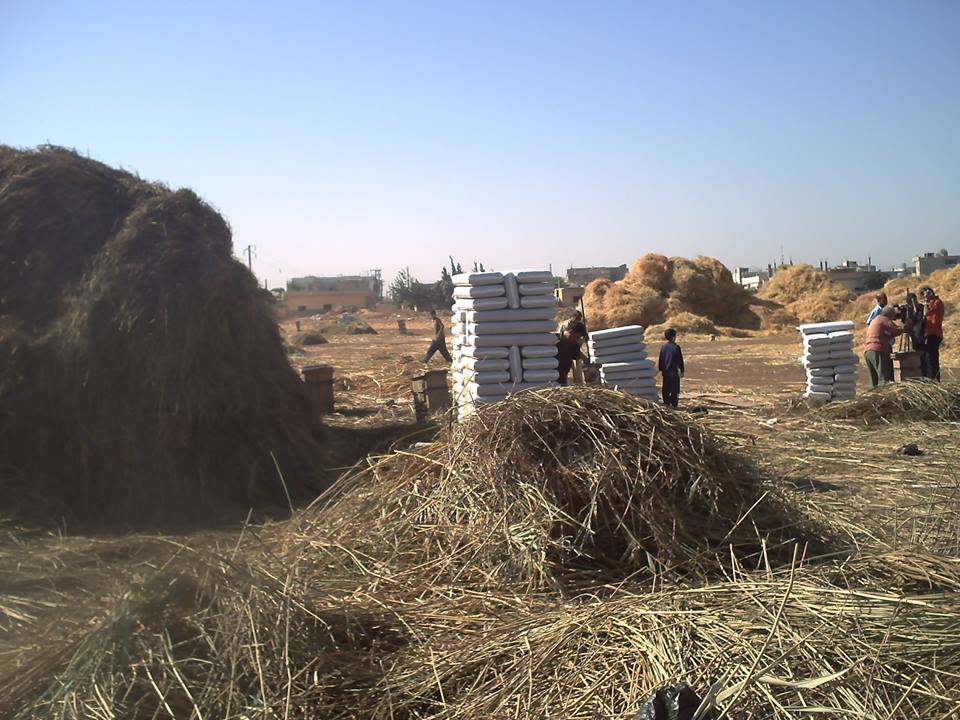 وكانت أكوام القش ترتفع إلى عدة أمتار وفي منتصفها فتحات شبيهة بأبواب الأكواخ كان عشرات من أهالي الحي رجالاً ونساء وأطفالاً يعملون فيها بنشاط وهمة ومتعة تحت الشمس اللاسعة ليكتسبوا لقمتهم بعرق النهار ضمن كرنفال جماعي يفتقده أهالي دير بعلبة الموزعون في أنحاء العالم اليوم.