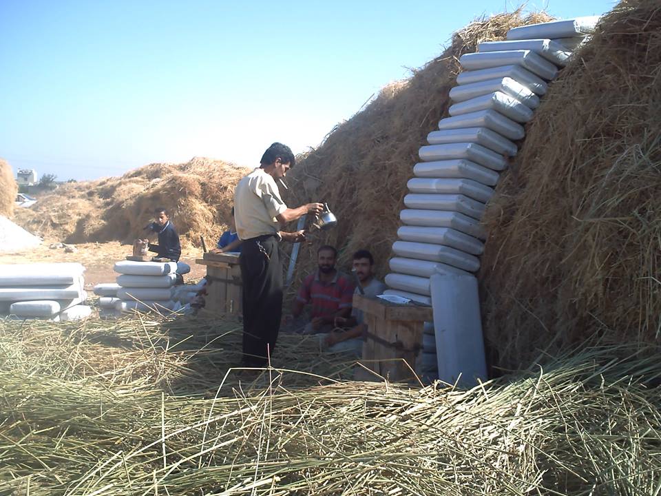دأب أهالي البلدة على الذهاب صيفاً إلى غور العاصي ومجرى النهر المار من حمص حيث تنتشر أعشاب طويلة تشبه سعف النخيل والخوص تنبت في مغايص المياه تسمى "الحلفا" أو "السعد" ويأتون بها إلى مكان وجود البيادر ويرصونها على شكل أكوام كبيرة، وأكثر انتاجهم يكون في فصل الشتاء حيث يقضون الصيف في جمع القش من "حلفا" أو بقايا حصيد الحنطة ثم يقومون بفتح فجوات في هذه الأكوام حسب الجو واتجاه الريح على شكل كهوف داخلية للعمل فيها.