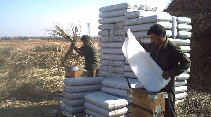 قبل أن تهجّرهم الحرب في جهات العالم الأربع ويذوقوا مرارة اللجوء والحاجة اتخذ أبناء بلدة دير بعلبة- شرق حمص- مهنة كانت تمثل مورد رزق لهم ولأبنائهم على مدى سنوات طويلة، وهي صناعة تكايا – مساند- القش التي تصنع من الحلفة التي تنمو على أطراف البحيرات والأنهار.