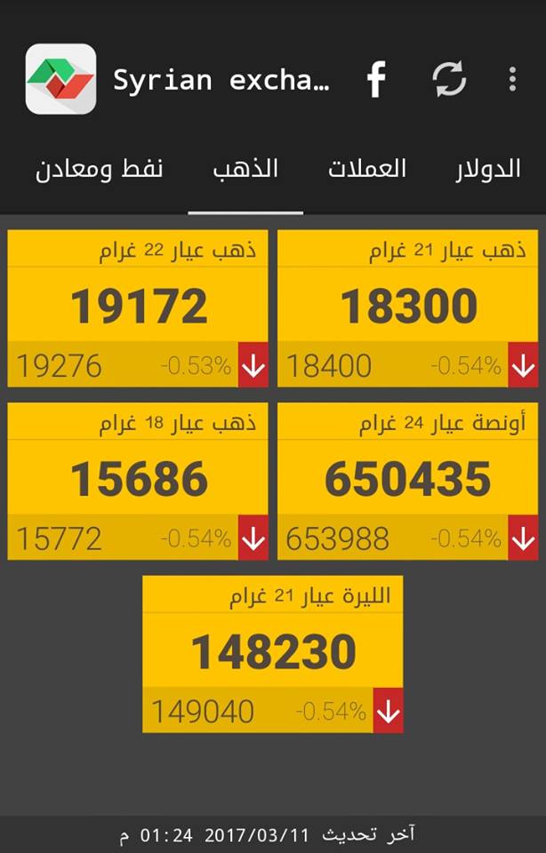 وأصبح سعر غرام الـ 21 ذهب عند 18200 ليرة شراء، 18300 ليرة مبيع.