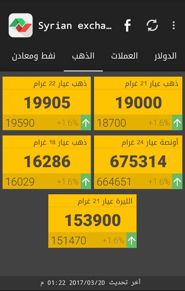 وفيما يلي أسعار أوزان الذهب حسب "سيرياستوكس":