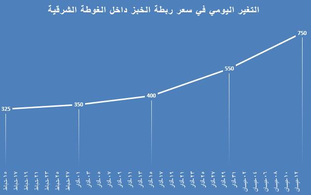 وفي ما يلي مخطط بياني يوضح مراحل ارتفاع سعر ربطة الخبز داخل أسواق الغوطة الشرقية: