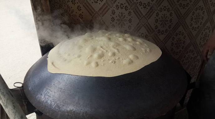 ويضيف السيد خالد أنه يقوم بإنتاج الخبز مقابل 275 ليرة سورية لكيلو الطحين الواحد، "فيأتي شخص ومعه كيلو طحين (لا يهم إن كان قمح أو شعير أو الاثنين مخلوطين معاً)، ويطلب مني أن أعجن العجين وأجهزه على شكل أقراص ثم أقوم بطهيه على الصاج ، مقابل مربح بسيط بعد احتساب ثمن الحطب الذي يأخذه تجهيز الخبز. وهكذا أقضي معظم الساعات في اليوم في هذا العمل القديم الجديد".