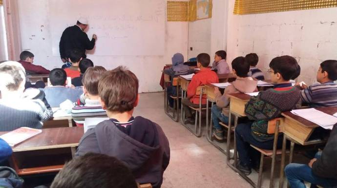 وكشف "طه" عن أن التعليم في الغوطة الشرقية يتقاسمه التعليم الخيري والتعليم العام بحيث يشكل التعليم العام الجزء الأكبر وهو أكثر المتضررين من إطباق الحصار وما نجم عنه من ارتفاع لأجور التحويل بنسب جنونية، لتقع مؤسسات التعليم بفرعيها الخيري والعام أمام مأزق ألا وهو تحويل كامل مستحقات شهر آذار، ونحن الآن تجاوزنا منتصف شهر نيسان لتكون شريحة التربويين بكافة أشكالها من دون تعويضات قرابة شهر ونصف، وهذا مؤشر خطير في الجانب التعليمي والذي يعتبر من أهم ركائز المجتمع.