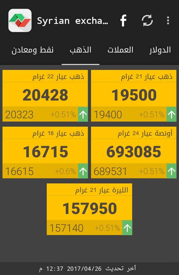 وفيما يلي أسعار أوزان الذهب حسب "سيرياستوكس"، وفق التسعيرة الرسمية الصادرة عن جمعية الصاغة بدمشق بتاريخ أمس الأربعاء، والتي ما تزال سارية اليوم الخميس: