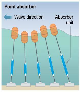 وربما يكون من الأجدى حالياً اتباع مبدأ المخمدات العائمة، خصوصاً وأنها مع كل سوء المردود صالحة للتوليد من المد والجزر خلال سكون البحر، أو أجهزة النقاط الطافية التي تعمل على تشغيل بستونات تحتية بشكل مباشر عند حركة الموج.