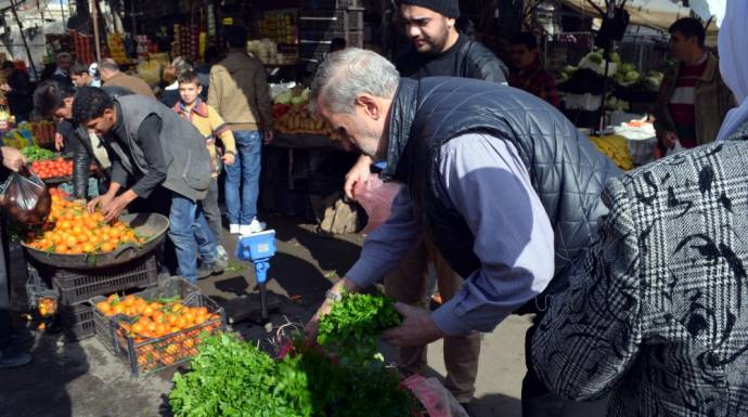 ورصد التحقيق أسعار الخضار الجنوني، واستغرب الفروقات القليلة بين السوق وصالات التدخل الإيجابي: "لقد بدت الفروقات الواضحة في أسعار الخضر والفواكه بين سوق وآخر، مع وجود انخفاض محدود مع أسعار صالات ما يسمى التدخل الايجابي، التي تعرض السلعة ذاتها بأسعار أقل نسبياً من السوق من دون تحقيق غايتها في كسر الأسعار, حيث وصل سعر الكيلو غرام الواحد من البندورة 600 ليرة في أسواق دمشق، أما البطاطا بـ400 ليرة وبيعت الكوسا بـ 300 ليرة، أما الفول فقد بيع بـ 350 ليرة، كما وصل سعر الخيار إلى 400 ليرة، والباذنجان 500 ليرة للكيلو الواحد".