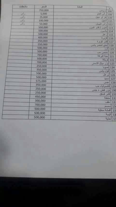 وهذه قائمة برسوم أهم البضائع الرئيسية التي تمر من المعبر: