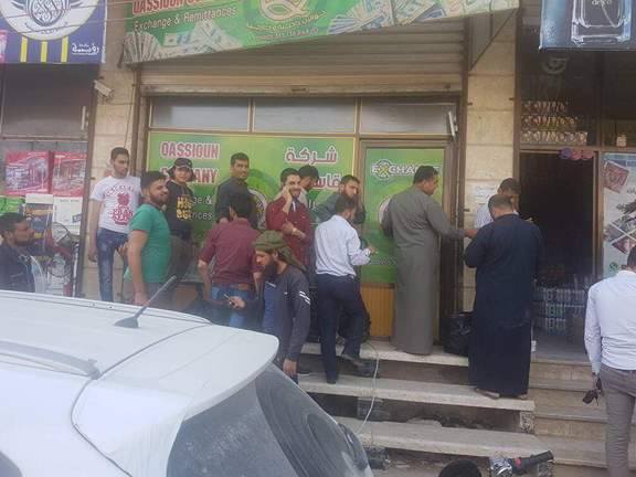 سلّم عناصر من هيئة تحرير الشام المبالغ المالية التي كانت قد تمت مصادرتها لساعات من الصرافيين، على الحواجز المؤدية لمدينة سرمدا، مشترطين على الصرافين عدم تحويل المبالغ التي بحوزتهم من الليرة السورية إلى الدولار، من أسواق بلدة سرمدا بريف إدلب.
