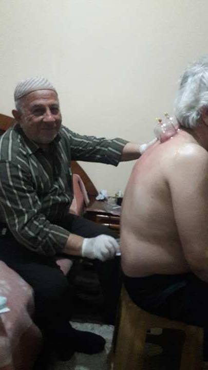 وعبّر أبو العبد عن ارتياحه بعد العلاج بالحجامة نتيجة إصابته بالتصاق في أعلى يده اليسرى. "تعالجت بمركز للعلاج الفيزيائي في ريف اللاذقية، ولكن بعد تقدم جيش الأسد لجأت إلى تركيا، ولم أتمكن من متابعة العلاج لتكلفته العالية بالإضافة إلى مصاريف السفر، وأنا أعاني من التصاق الأوتار في كتفي الأيسر، وجدت باللجوء إلى الحجامة راحة كبيرة وتقدماً ملموساً في تحريك يدي وانخفاض الألم فيها، إضافة إلى قدوم الحجام إلى منزلي وتقديمه الخدمة مجاناً بدون أية تكلفة".