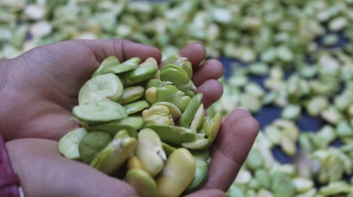 يقول عمر: "إذا جففنا الفول فإنه يصغر حجمه إلى النصف أو أقل ويفقد لونه ورائحته الزكية".