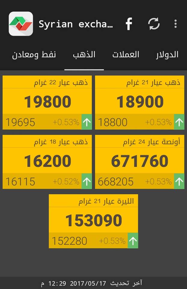 وفيما يلي أسعار أوزان الذهب حسب "سيرياستوكس"، ووفق التسعيرة الرسمية الصادرة عن جمعية الصاغة بدمشق: