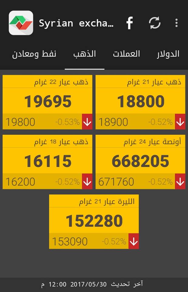 وفيما يلي أسعار أوزان الذهب حسب "سيرياستوكس"، ووفق التسعيرة الرسمية الصادرة عن جمعية الصاغة بدمشق: