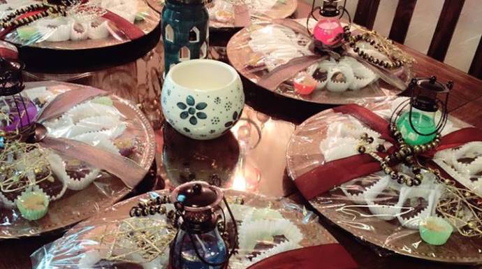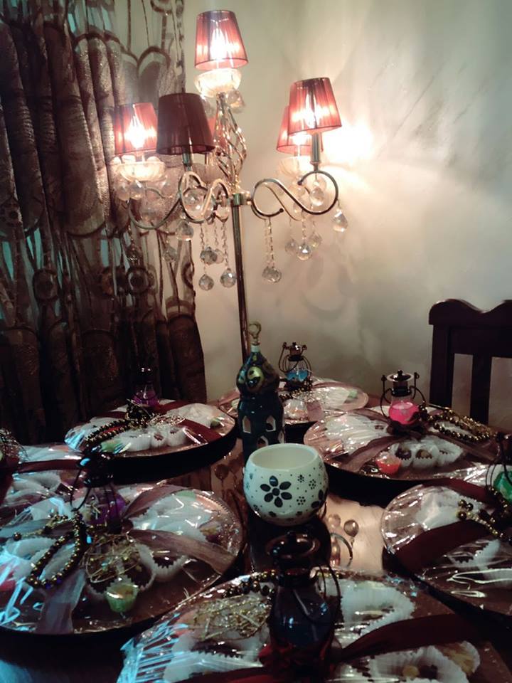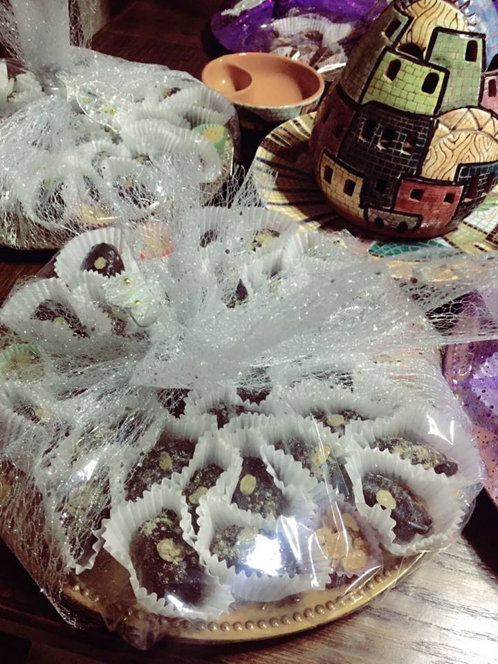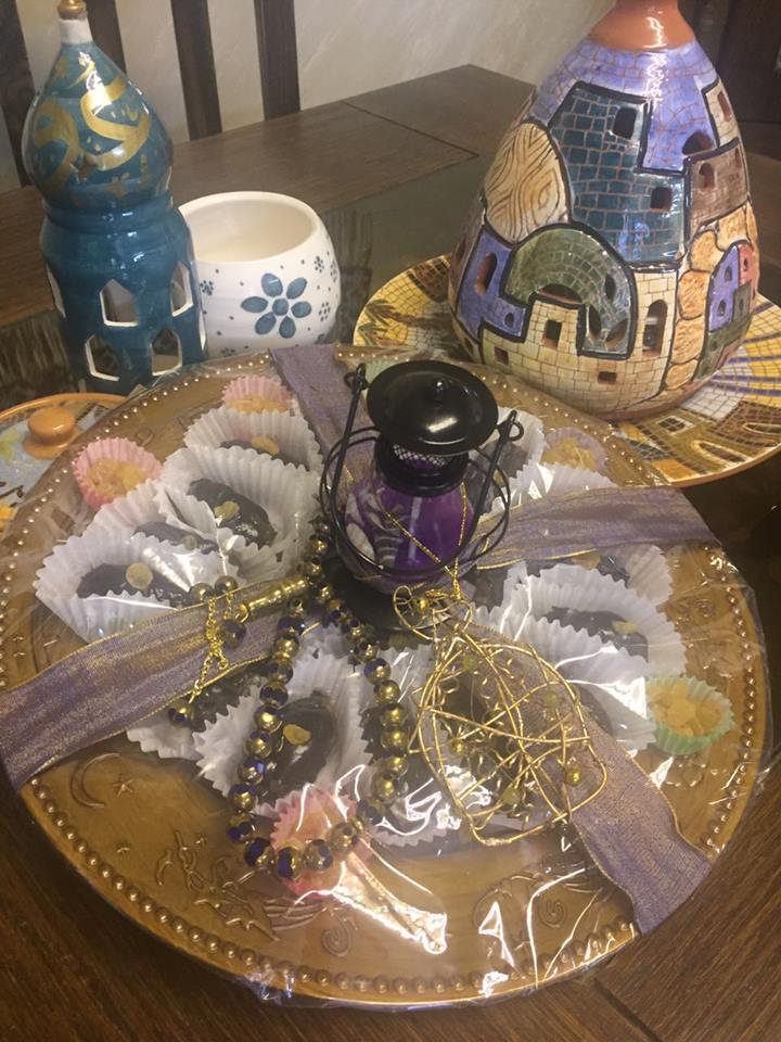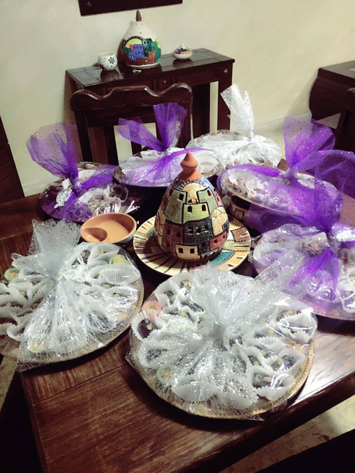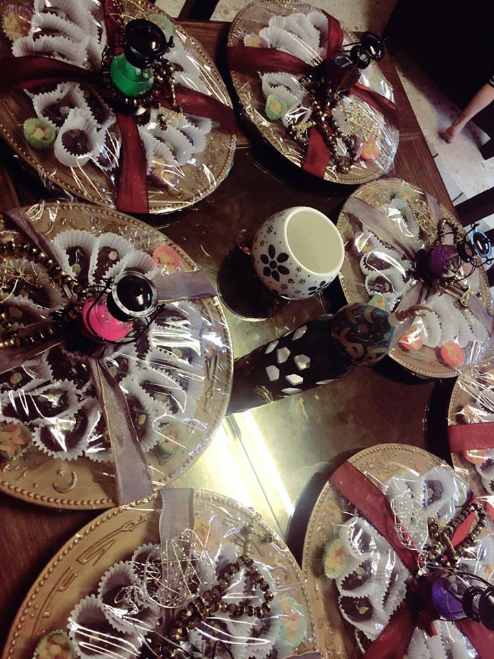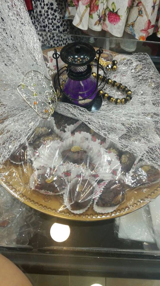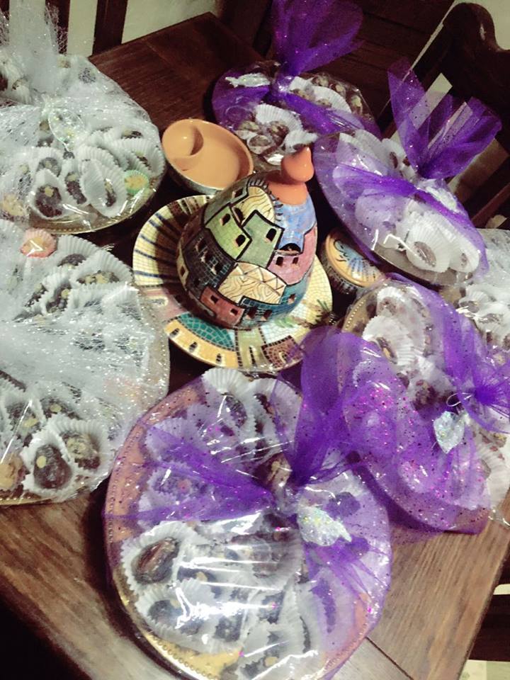 تتابع أم عبد الكريم بأنها أعجبت بالفكرة وبدأت بالتنفيذ على عجل فنزلت إلى السوق وأحضرت نوعية ممتازة من التمر وأحضرت أطباق بلاستك جميلة وفوانيس صغيرة إضافة إلى شكولاته ومكسرات، وعملت على إفراغ التمر من النوى وحشوه بالمكسرات وتغطسيه بالشوكولاته، وصَفِّهِ بطريقة أنيقة في الصحن ثم تغليفه ووضع فانوس معه فبدا جميلاً جداً.