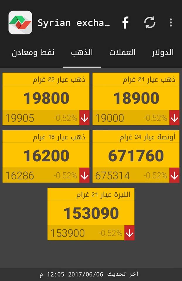 وفيما يلي أسعار أوزان الذهب حسب "سيرياستوكس"، ووفق التسعيرة الرسمية الصادرة عن جمعية الصاغة بدمشق:
