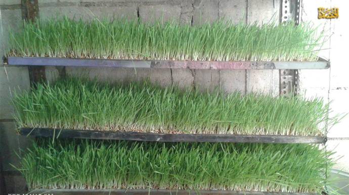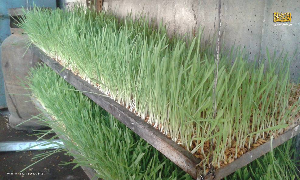 وتابع أيضاً: "العملية بسيطة جداً، عبارة عن نقع الشعير بالماء لمدة يوم، وبعدها أقوم بوضعه على أوانٍ مسطحة في غرفة. أسقيه في اليوم من 6 إلى 10 مرات فينبت الشعير ويتحول الكيلو الواحد من الشعير إلى ما يقارب 6 كيلو. وفي حال توفر الشروط الملائمة قد يصل إلى 8 كيلو، ناهيك عن أنه يتحول إلى علف حقيقي".