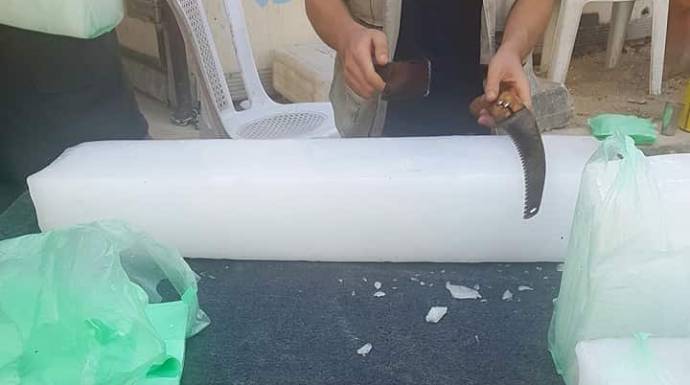 مع ارتفاع درجات الحرارة وساعات الصيام الطويلة في شهر رمضان غدت قوالب الثلج والتي يتم إدخالها من العاصمة دمشق، الخيار الوحيد أمام أهالي جنوب العاصمة لتخفيف وطأة الحر، حيث تشهد أسواق المنطقة إقبالاً كثيفاً على شراء قطع الثلج خاصة مع عدم قدرة الأهالي على تبريد المياه في منازلهم نتيجة قلة عدد ساعات الكهرباء النظامية التي تغذي المنطقة بموجب اتفاق الهدنة مع نظام الأسد، والتي لا تتعدى ساعة واحدة يومياً، كما لا يمكن الاعتماد على كهرباء المولدات لتشغيل البرادات، لأن حصة كل عائلة لا تتعدى نصف أمبير فقط.