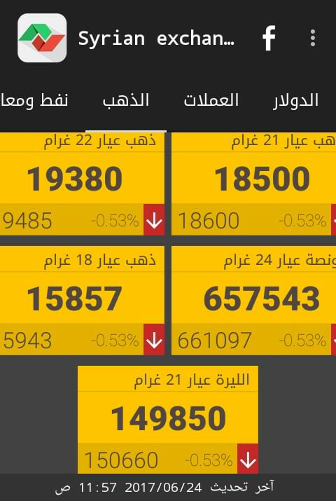 وفيما يلي أسعار أوزان الذهب حسب "سيرياستوكس"، ووفق التسعيرة الرسمية الصادرة عن جمعية الصاغة بدمشق: