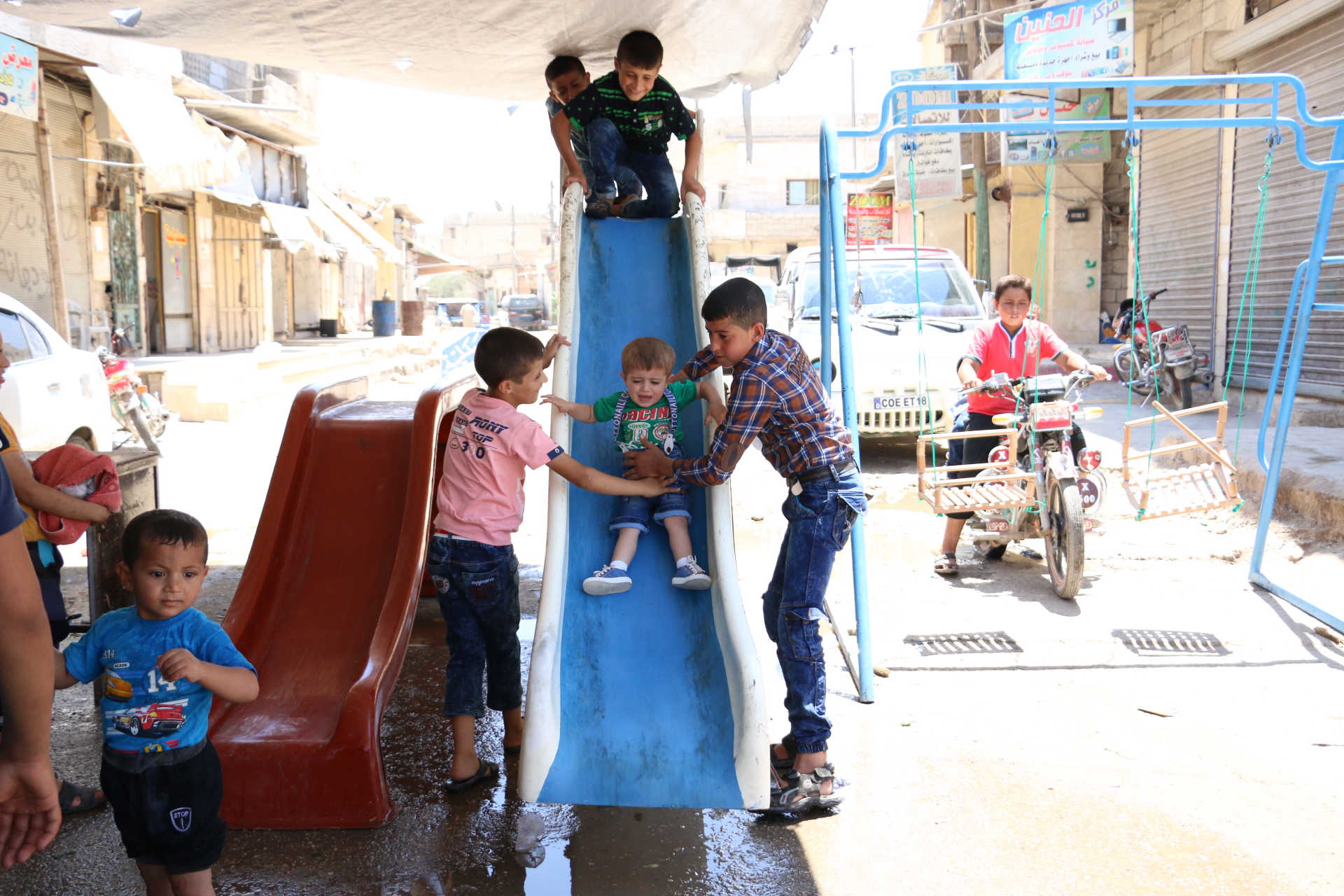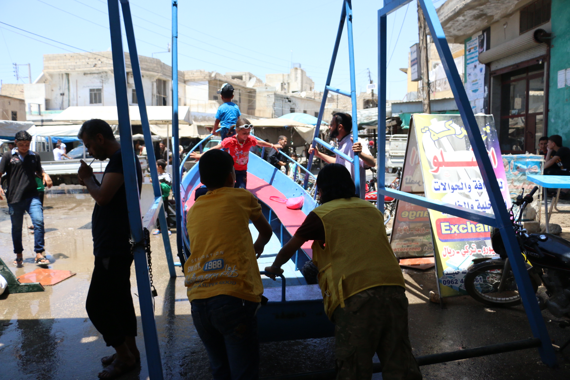 رصدت كاميرا "اقتصاد" فرحة الأطفال في ألعاب ساحة العيد بسوق الأتارب في ريف حلب الغربي، حيث تراوحت تكلفة ركوب الألعاب بين 50 إلى 100 ليرة.