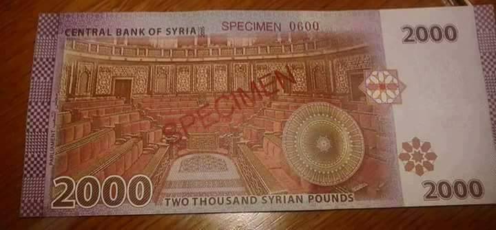 والعملة الجديدة تحمل على أحد وجهيها صورة بشار الأسد وعلى الوجه الآخر صورة لمجلس الشعب من الداخل.