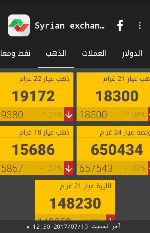 وفيما يلي أسعار أوزان الذهب حسب "سيرياستوكس"، ووفق التسعيرة الرسمية الصادرة عن جمعية الصاغة بدمشق: