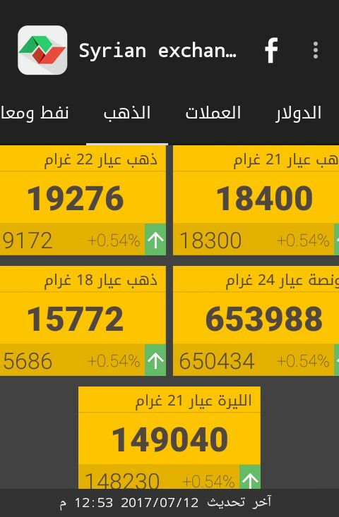 وفيما يلي أسعار أوزان الذهب في دمشق، حسب "سيرياستوكس"، ووفق التسعيرة الصادرة عن جمعية الصاغة: