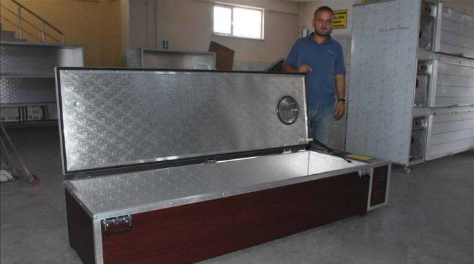 في مسعى منه لتلبية حاجات الناس في الحفاظ على جثث الموتى لفترة ما، يصنع المواطن التركي "رجب تاشغيران" توابيت مبرّدة وثلاجات الموتى، في ورشته بولاية زونغولداق، شمالي البلاد، ويصدرها إلى 10 دول.