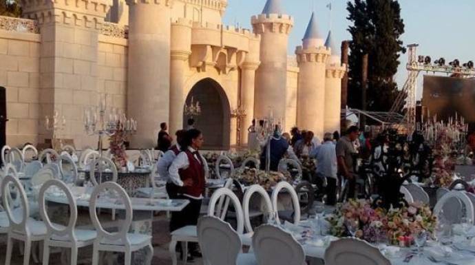 بالعودة إلى حفلة زفاف ابن رجل الأعمال اللاذقاني الشهير، فهو حجز فندق ميريديان اللاذقية كاملاً، وأقام ديكورات خشبية، وحفل غنائي أحياه المطرب اللبناني محمد إسكندر، والذي كتب على صفحته الشخصية في "فيسبوك"، أنها المرة الأولى في حياته التي يُحيي فيها حفلاً على هذا المستوى من الفخامة.