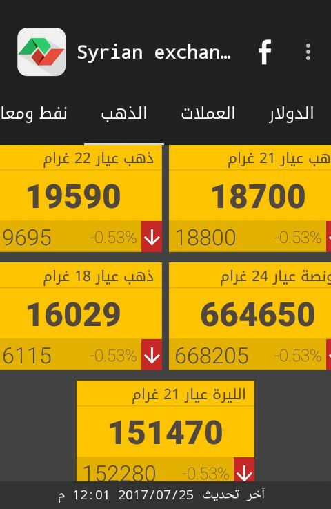 وفيما يلي أسعار أوزان الذهب في دمشق، حسب "سيرياستوكس"، ووفق التسعيرة الصادرة عن جمعية الصاغة: