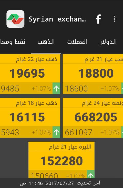 وفيما يلي أسعار أوزان الذهب في دمشق، حسب "سيرياستوكس"، ووفق التسعيرة الصادرة عن جمعية الصاغة: