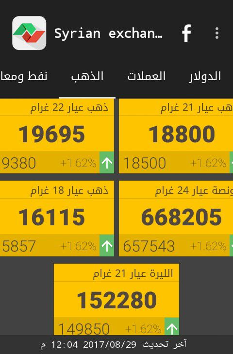 وفيما يلي أسعار أوزان الذهب في دمشق، حسب "سيرياستوكس"، ووفق التسعيرة الصادرة عن جمعية الصاغة:
