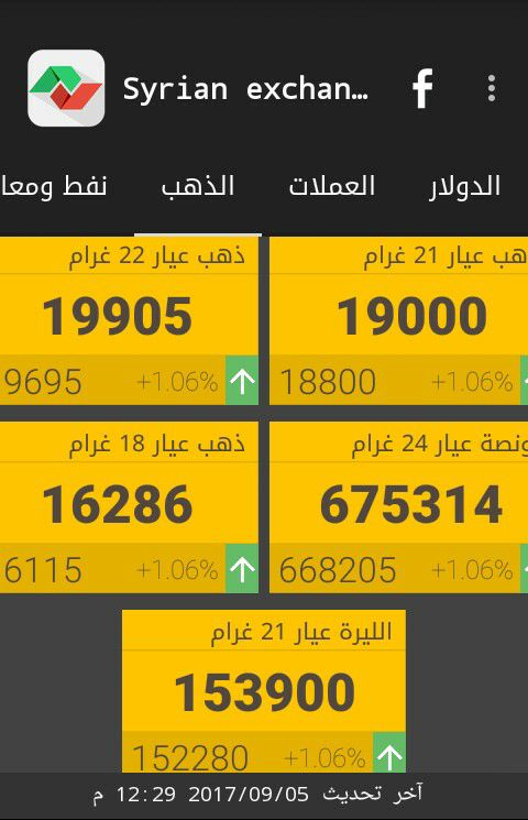 وفيما يلي أسعار أوزان الذهب في دمشق، حسب "سيرياستوكس"، ووفق التسعيرة الصادرة عن جمعية الصاغة: