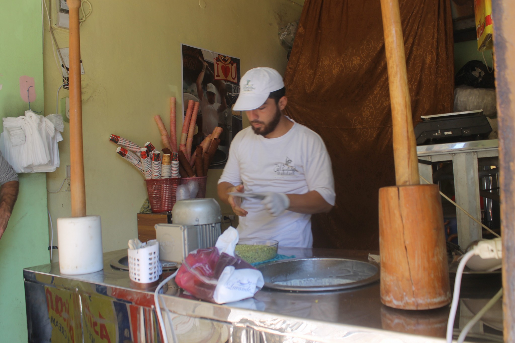 قال متحدثاً لـ "اقتصاد": "تتنوع أشكال البوظة في مدينتي إدلب. ولكن ما يُعرف بالبوظة الدق "العربية" فغير متوفرة، وأنا أول من يعمل بها".