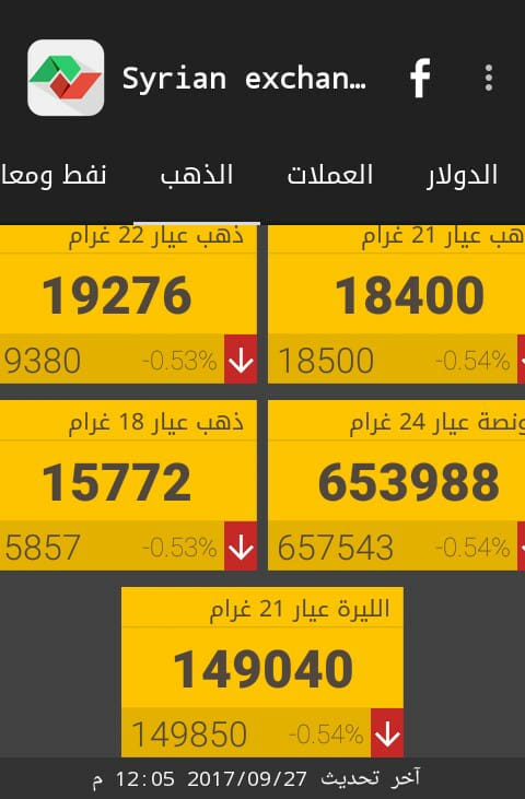 وأصبح غرام الـ 21 عند 18300 ليرة شراء، 18400 ليرة مبيع.