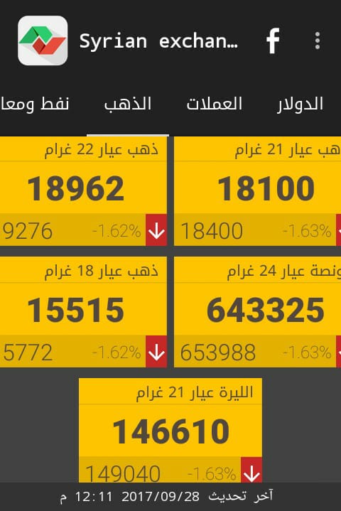 وفيما يلي أسعار أوزان الذهب في دمشق، حسب "سيرياستوكس"، ووفق التسعيرة الصادرة عن جمعية الصاغة: