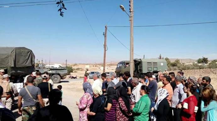 دخلت مؤخراً، إلى بعض القرى الموالية بريف حمص الشرقي والمعروفة باسم "الجفتليك"، مساعدات غذائية روسية وسط حراسة مشددة.