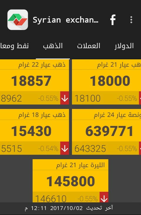 خسر غرام الـ 21 ذهب، 100 ليرة، في دمشق، اليوم الاثنين.