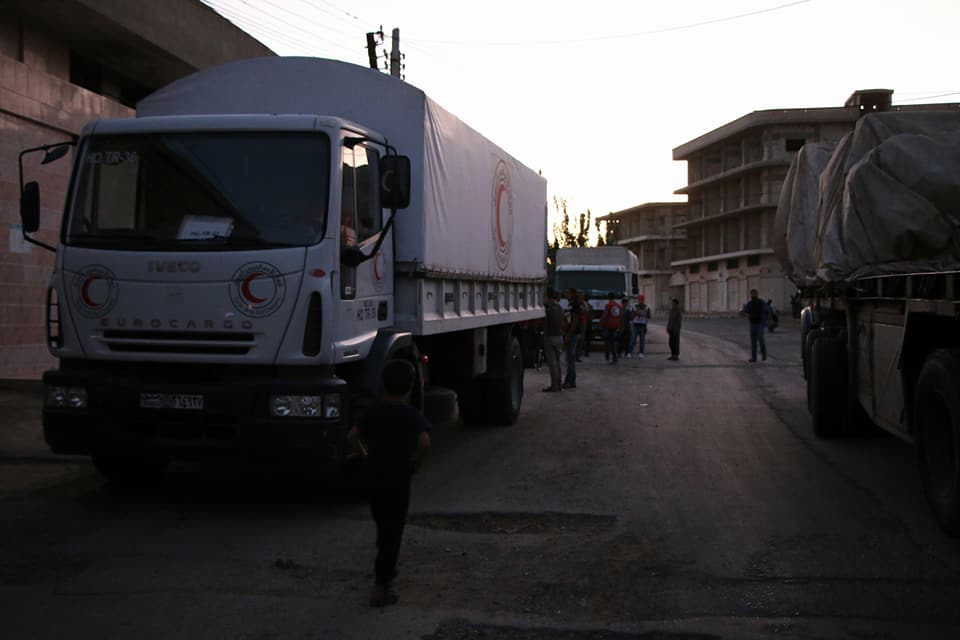 بالصور: قافلة مساعدات أممية للحولة، محمّلة بالكتب المدرسية