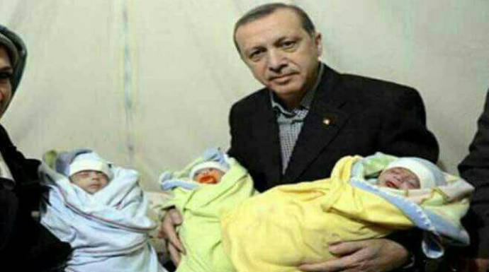 التوائم هم، "رجب، طيب، أردوغان". وُلدوا في تركيا قبل 5 سنوات في مخيم أورفا للاجئين السوريين، وأطلقت والدتهم عليهم هذه التسميات تيمّناً بالرئيس التركي "رجب طيب أردوغان"، والذي قام بزيارة للمخيم مع عقيلته، وباركا للعائلة، وحمل أردوغان الأطفال الثلاثة، وتقدم بوعود للعائلة بأن تكون حياتهم آمنة.
