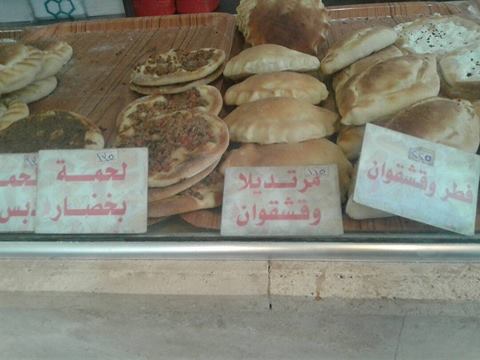مناقيش (الزعتر، الحرحورة، اللبنة)، بسعر 85 ليرة سورية للرغيف.