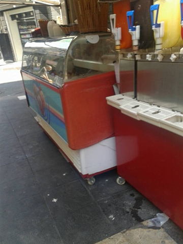 على الرصيف عند واجهة المحل، وُضعت آلة لتحضير عصير "السلاش" بسعر (200) ليرة سورية للكوب، وآلة لتحضير "البوظة السريعة" بسعر (200) ليرة سورية. بالإضافة لـ "كوميدينا"عُرضت فيها أنواع مميزة للبوظة الغنية بالشوكولا والمكسرات بسعر (150) ليرة لطابة واحد من البوظة.