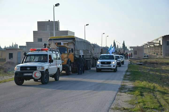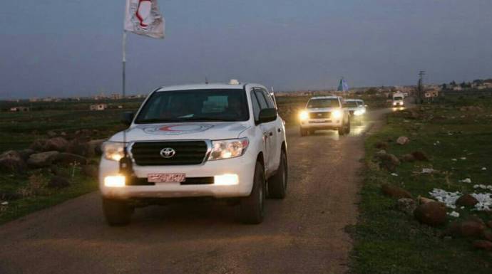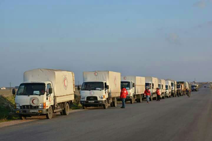 تمكّن الهلال الأحمر العربي السوري، بالتعاون مع مكاتب الأمم المتّحدة، من إيصال قافلة مساعدات إنسانيّة لتجمع بلدات "الحولة" المحاصرة بريف حمص الشمالي الغربي، وبلدات "حربنفسه وطلف وعقرب"، بريف حماة الجنوبي، مساء اليوم الخميس، وذلك بعد حسم نحو 30%من الكمية المحددة للحولة، و45% لبلدات ريف حماة الجنوبي.