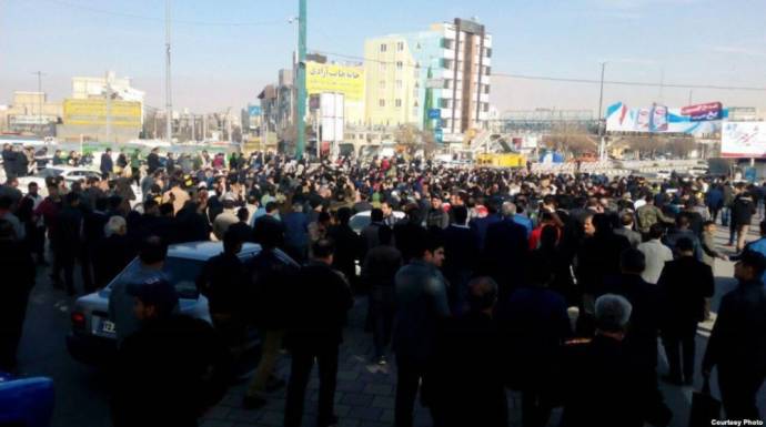 أظهرت مقاطع فيديو نشرت على وسائل التواصل الاجتماعي متظاهرين يهتفون قائلين "الموت (للرئيس حسن) روحاني“ و”الموت للدكتاتور". وخرجت احتجاجات أيضا في مدينتين أخريين على الأقل بشمال شرق البلاد.