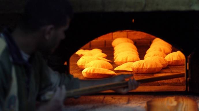 ينتظر الناس أمام الأفران وهم يجدون الكميات الكبيرة من الخبز تخرج أمام أعينهم، وتحمل بالشاحنات أو توضع مباشرة أمام الفرن للتجارة بها.
