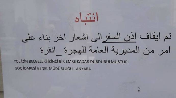 وينطبق هذا على القرار المفاجئ الذي اتخذته دوائر الهجرة التركية في ولايات تركية عدة من بينها العاصمة أنقرة وعينتاب وشانلي أورفا وغيرها من الولايات الأخرى، الذي أوقفت بموجبه منح إذن السفر للسوريين حتى إشعار آخر.
