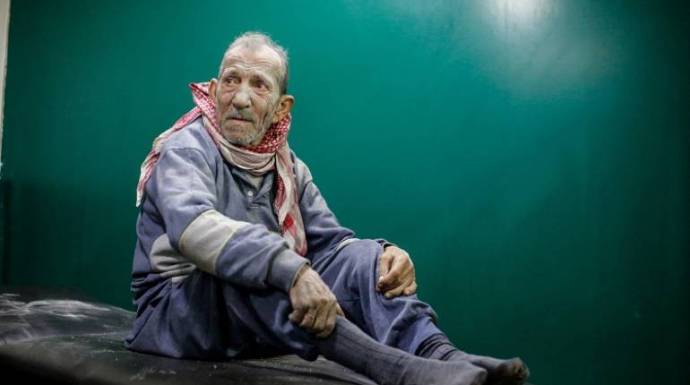 أصابت الضربة الجوية منطقة الغوطة الشرقية بسوريا يوم الأربعاء في ثالث أيام حملة قصف عنيف. بعدها بوقت قصير، انتشل عمال الإنقاذ أربعة أطفال من المبنى، لكن والدهم قتل وباتوا الآن يتامى.