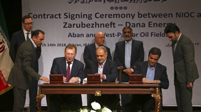 وقعت شركة النفط الإيرانية التي تديرها الدولة اتفاقا بقيمة 740 مليون دولار مع تحالف روسي - إيراني لتطوير حقلين للنفط بالقرب من الحدود العراقية.