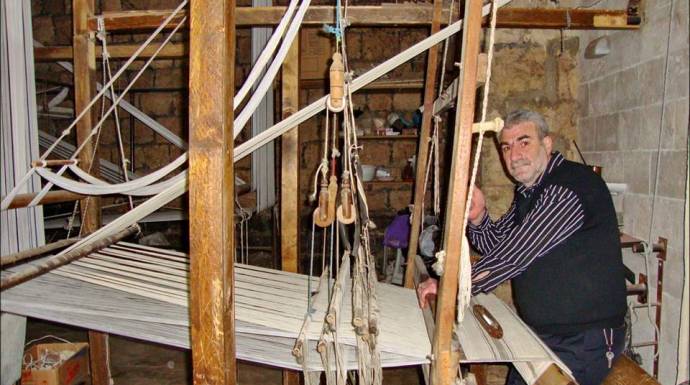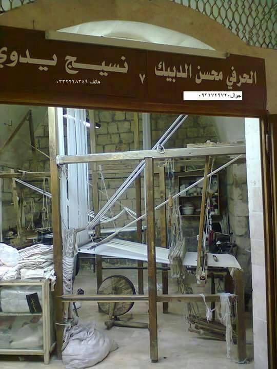 خلف نول قديم ورثه عن والده، يجلس الحرفي الحموي "محسن دبيك" في محل صغير بسوق المهن اليدوية وسط مدينة حماة متشبثاً بمهنة والده التي تعلمها قبل أن يبلغ العاشرة من عمره، وهي صناعة العباءات النسائية والشراشف والبرانص والبشاكير على نول خشبي قديم.